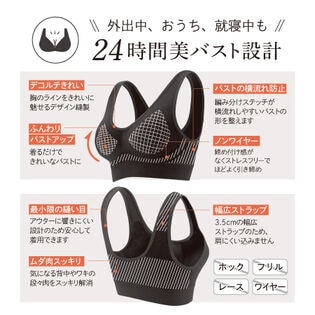 【S-M/ブラック2枚】ゆる圧ブラ | 「脇高設計」で脇肉スッキリ! 外出中、おうち、就寝中も24時間美バスト設計!
