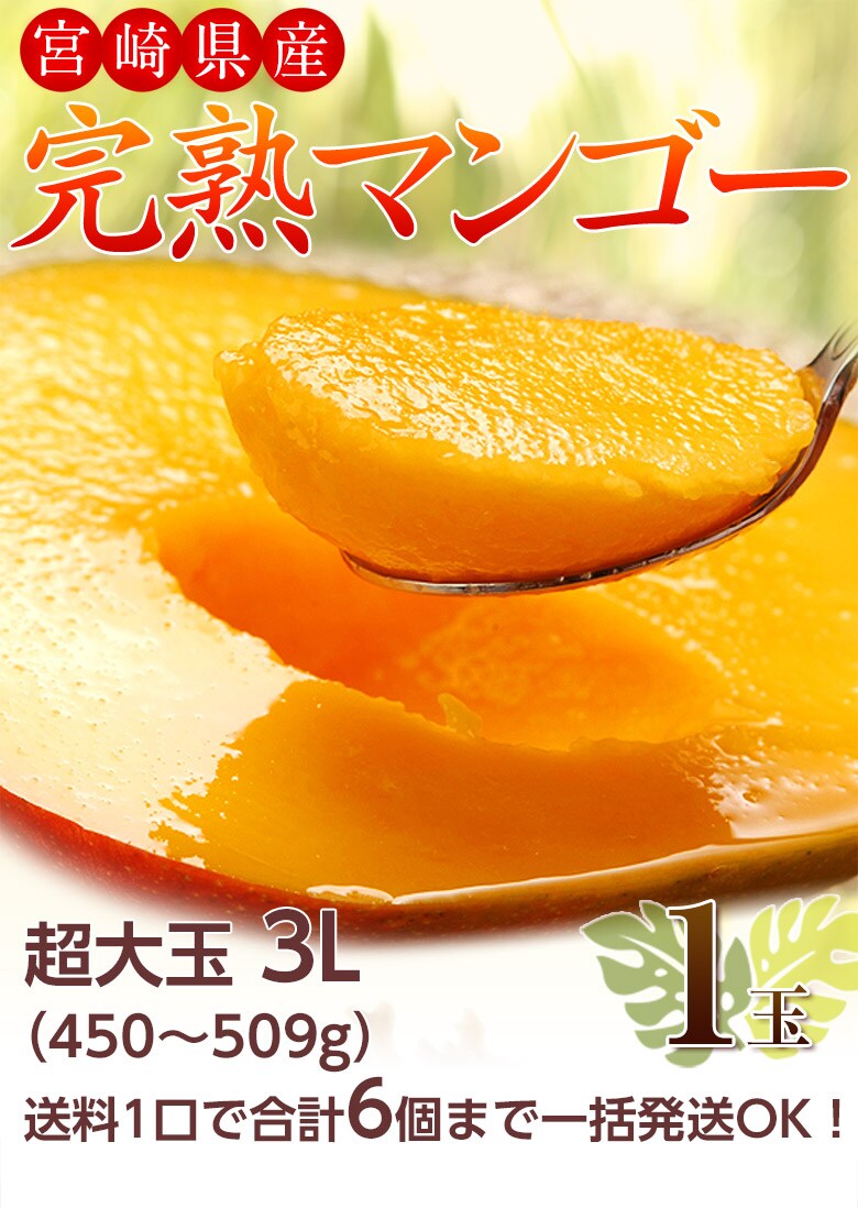 【 3L(450〜509g)×1玉】超大玉『みやざき完熟マンゴー』
