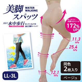 - 【LL-3L/ベージュ/2枚組】NEWウォーターウォーキング美脚スパッツ ロングタイプ同色2枚組