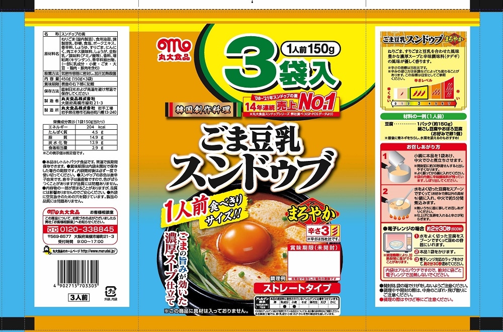 【3袋入×12個】丸大食品 ゴマ豆乳スンドゥブ(スンドゥブの素) | ねりごま、すりごまと豆乳を合わせた風味豊かな濃厚スープと辛味調味料の風味が優しく香ります!