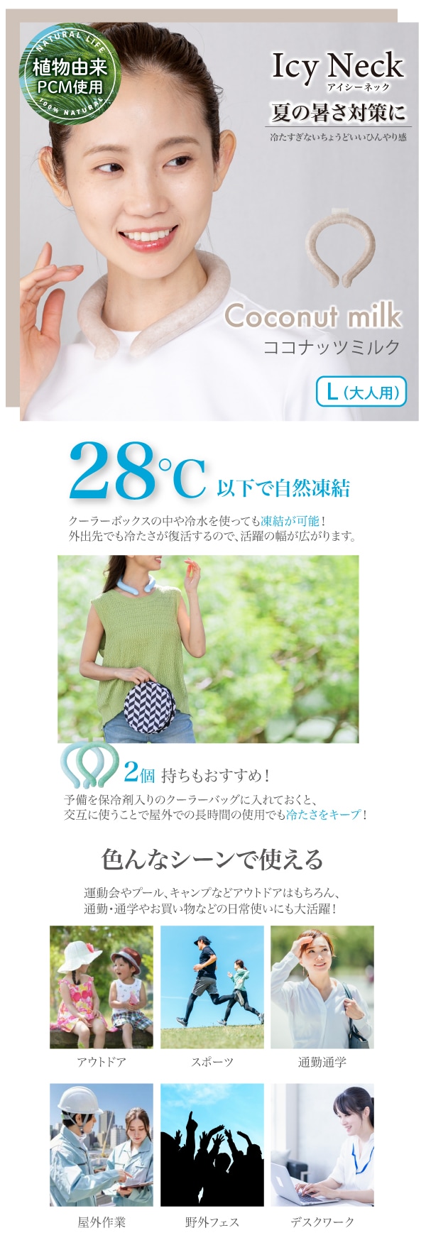 【Lサイズ/ココナッツミルク】Icy Neck アイシーネック | 夏の暑さ対策に!28℃以下で自然凍結 快適温度をキープ 繰り返し使える 節電対策