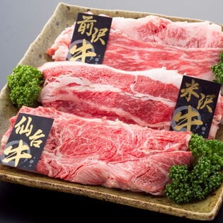 東北地方を代表する高級銘柄牛「米沢牛」「前沢牛」「仙台牛」のみちのく3大和牛を食べ比べられる夢のセット!