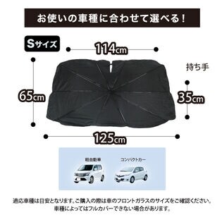 【Sサイズ】UVカーサンバイザー<UVカット率99.9%以上>車用日傘 | カーサンシェードで車内の高温・紫外線対策!遮光、断熱、小さくたためて収納便利♪