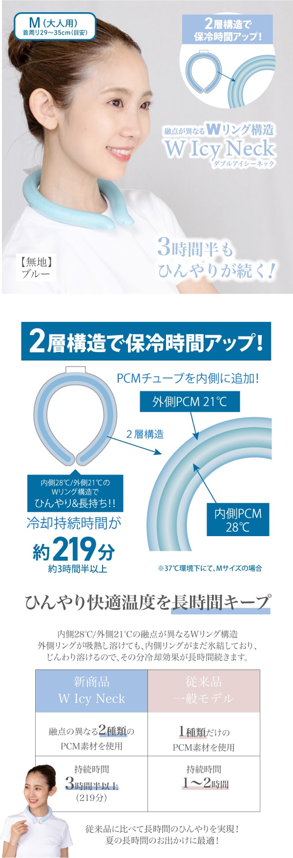 【Mサイズ/無地 ブルー】W Icy Neck ダブルアイシーネック | 夏の暑さ対策に!28℃以下で自然凍結 2層構造で保冷時間アップ!ひんやり&長持ち!