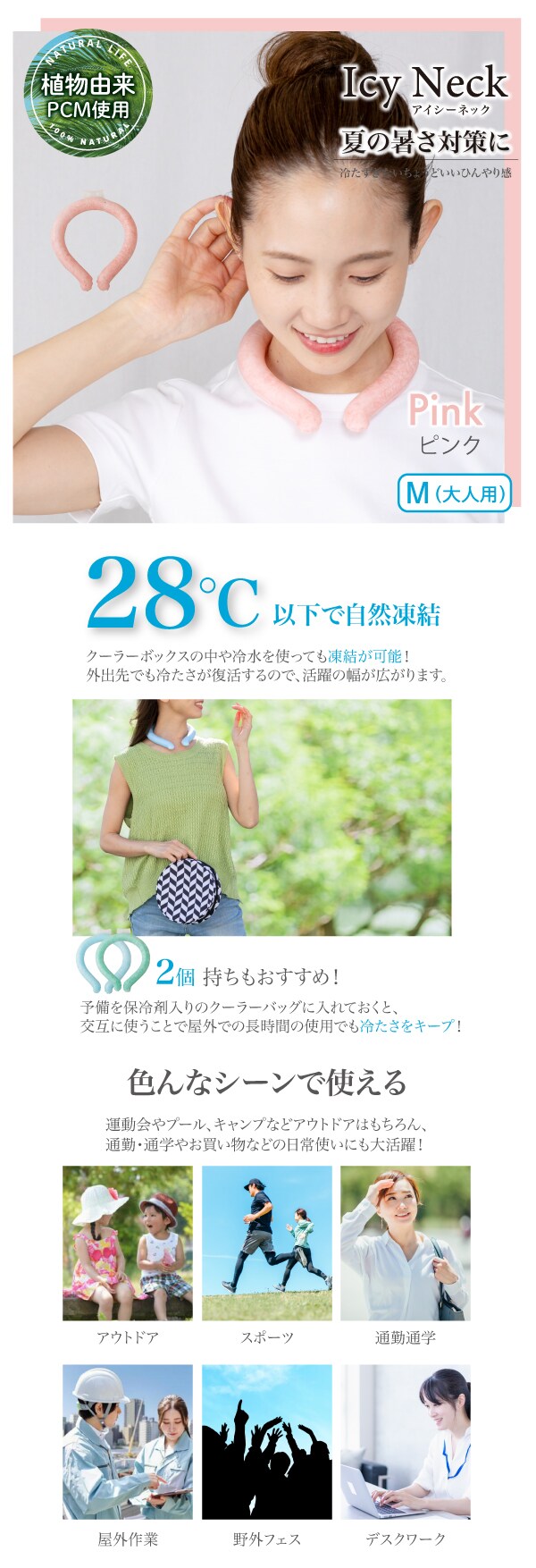 【Mサイズ/ピンク】Icy Neck アイシーネック | 夏の暑さ対策に!28℃以下で自然凍結 快適温度をキープ 繰り返し使える 節電対策