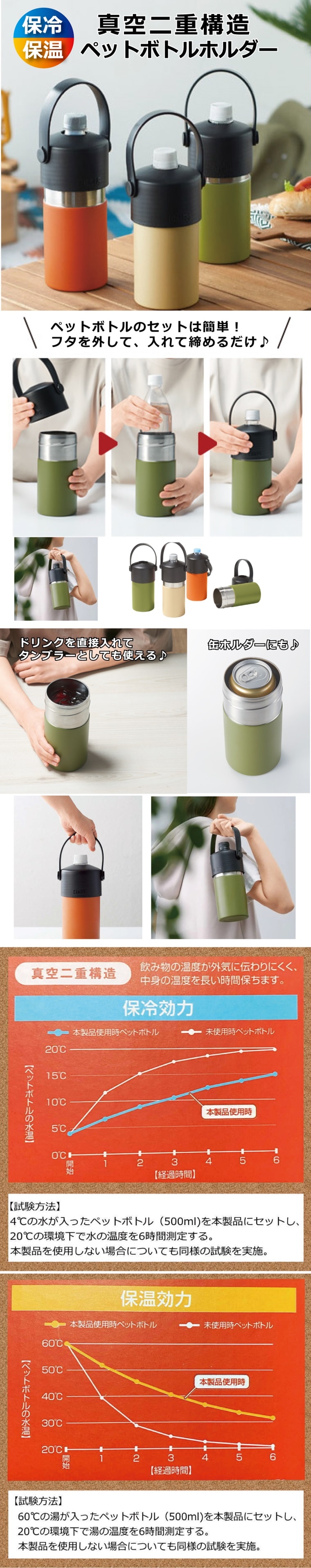 保温&保冷をキープする真空二重構造のペットボトルホルダー!