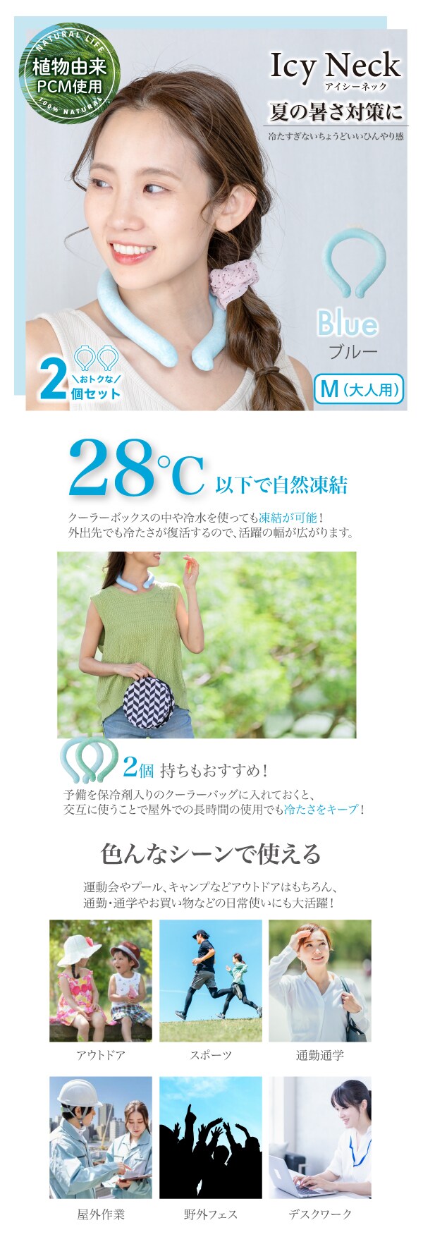 【Mサイズ/ブルー2個セット】Icy Neck アイシーネック | 夏の暑さ対策に!28℃以下で自然凍結 快適温度をキープ 繰り返し使える 節電対策
