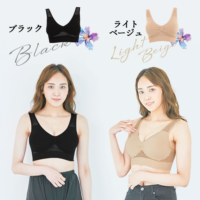 【2枚組 ブラック×ライトベージュ / S-M】ラクブラ24 メッシュ | 生地面積が約45%減!パッドもメッシュ仕様で通気性アップ!暑い日も快適な着け心地♪