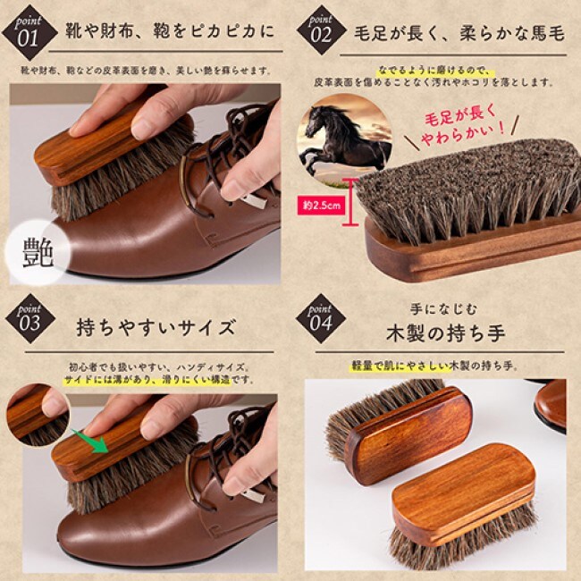 靴や財布、鞄などのお手入れに!馬毛ブラシ | 柔らかな馬毛を使用。靴ブラシ 靴磨き ツヤ出し ホースブラシ シューブラシ くつブラシ