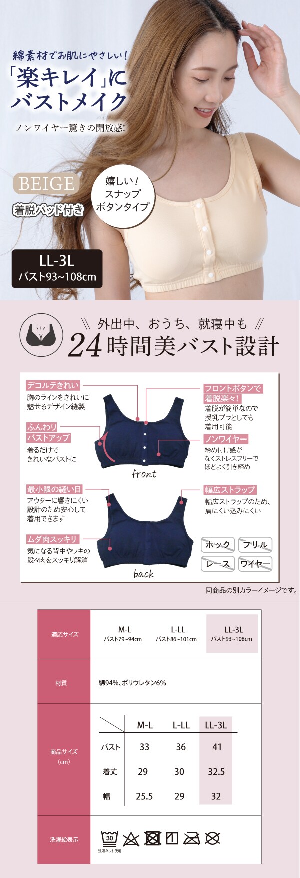 【LL-3L/ベージュ】綿混こだわりの前あきブラ | 外出中、おうち、就寝中も24時間美バスト設計