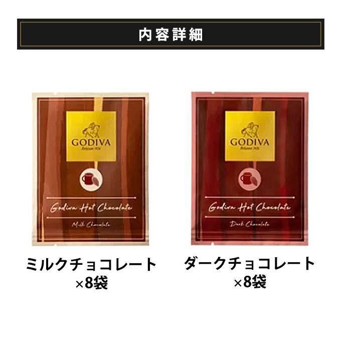 - 【計16袋/1箱4袋入×4箱】ゴディバ チョコレートドリンク ミルクチョコ味・ダークチョコ味