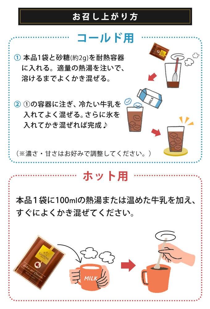 【計16袋/1箱4袋入×4箱】ゴディバ チョコレートドリンク ミルクチョコ味・ダークチョコ味 | 芳醇な香りとコクを感じられる優雅な味 ホットでも アイスでも♪