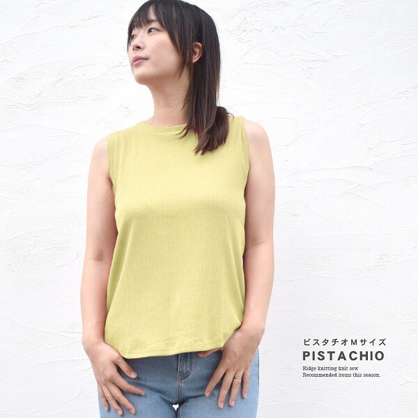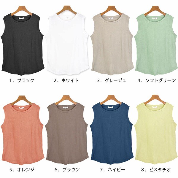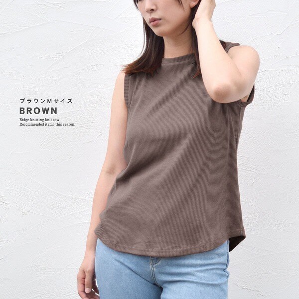 - 裾ラウンドカットテレコリブ地タンクトップノースリーブトップス