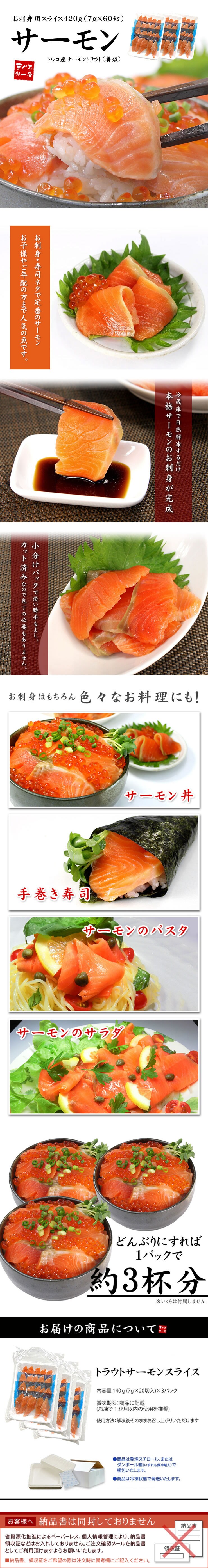 - 【賞味期限間近】【420g】お刺身用サーモンスライス[トラウトスライス140g-3p]