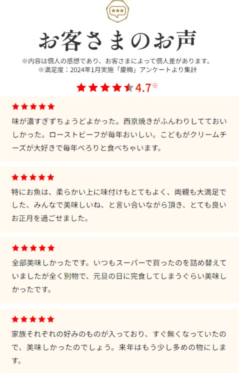 ・満足度94%以上のおせちです。※2024年1月Oisix実施アンケート結果より