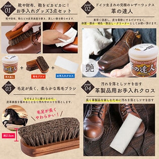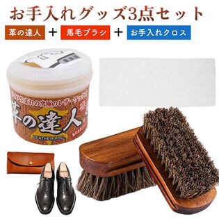 - 革の達人+馬毛ブラシ+お手入れクロスの3点セット