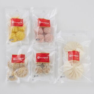- 手包み肉まん240g(2個入)、貝柱入焼売150g(5個入)、小籠包140g(4個入)、錦糸焼売125g(5個入)、珍珠丸子175g(チンツーワンズ、5個入)×各1袋