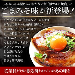 ・原材料/材質/素材:豚カルビ、しょうゆ(国内製造)、糖類発酵調味料、醸造酢、みそ、砂糖、ごま、にんにく、ピーナッツバター、しょうが/アルコール、調味料(アミノ酸等)、(一部に小麦・落花生・ごま・大豆を含む)