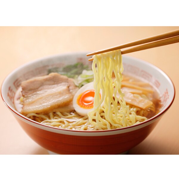 2種類の小麦粉を独自の配合で練り込み熟成させた麺はモチモチとした食感とつるっとした喉ごしが特徴。あっさりとした醤油スープと相性抜群です。やわらかい自家製チャーシューと風味豊かなフリーズドライネギが付いた本格的なラーメンをお召し上がりいただけます。