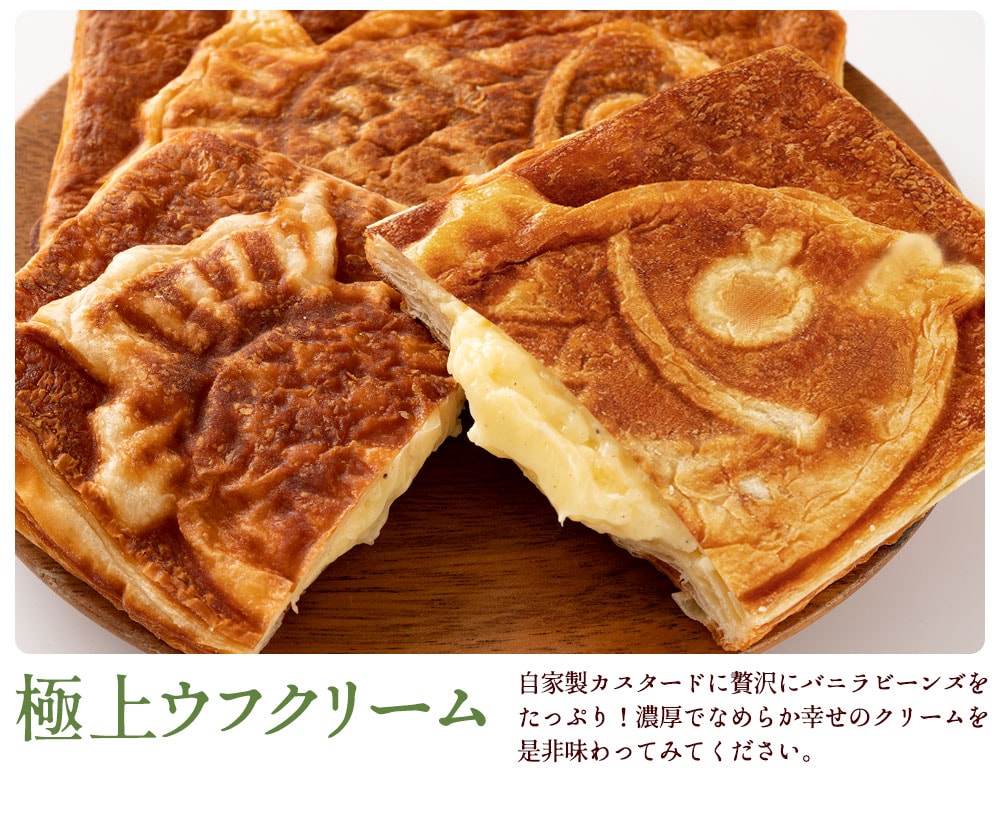 【4匹入】クロワッサンたい焼き(極上ウフクリーム) | 高温で一気に焼き上げることで独特のサクッとした食感♪クロワッサン生地&極上クリームが絶品!