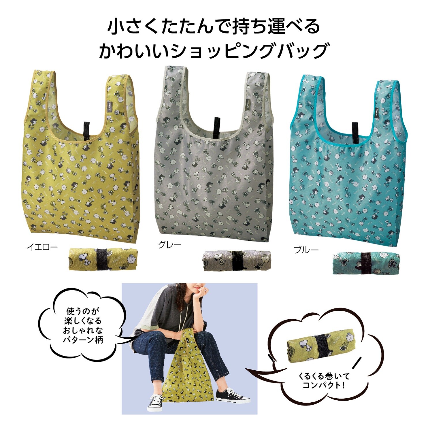 - 【2個セット:グレー+他1色】スヌーピー折りたたみエコバッグ