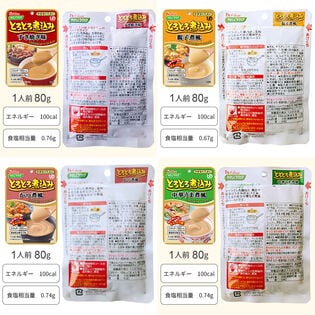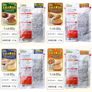【8種計40袋】ハウス やさしくラクケア とろとろ煮込みシリーズ8種アソート | 馴染みのあるメニューのおいしさを再現し、なめらかなペーストに仕上げました。