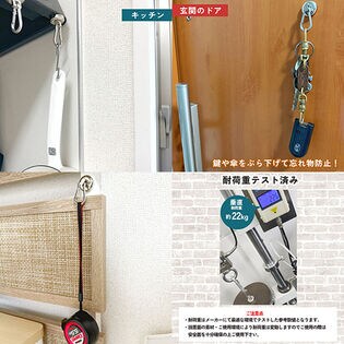 キッチンや玄関などでよく使うものを掛けておくのにおすすめです。