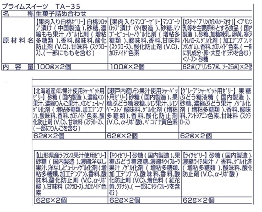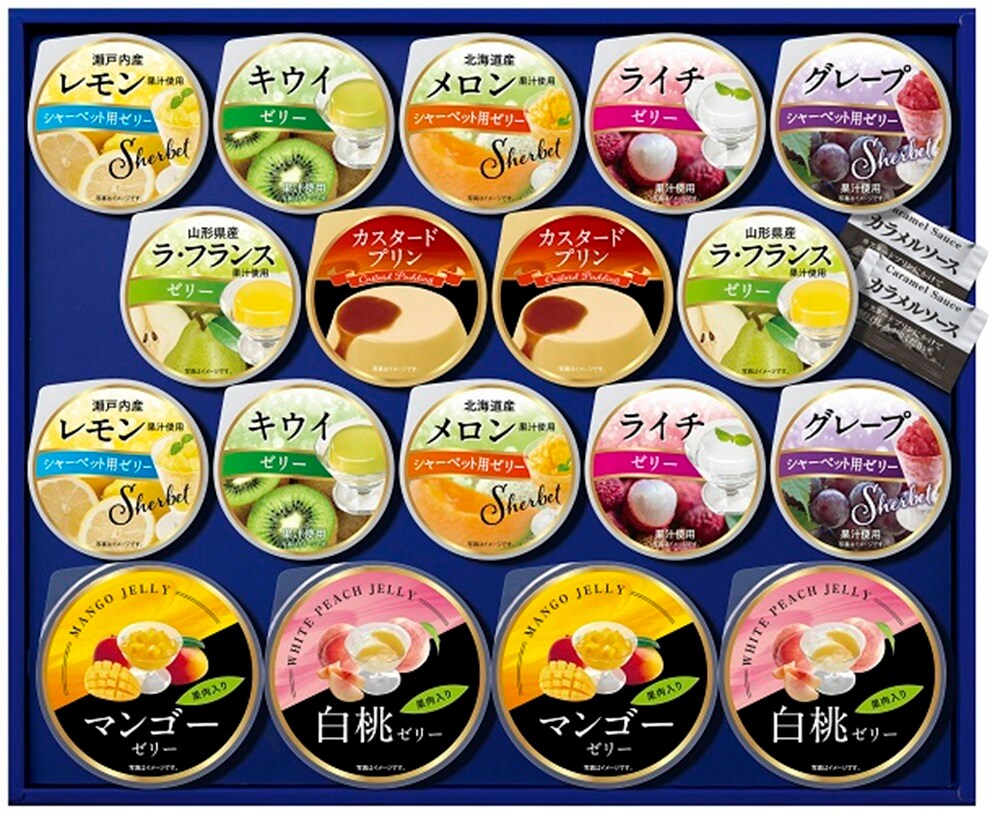 【賞味期限間近】丸大食品 プライムスイーツ(TA-35) | 白桃・マンゴーゼリーや、プリン、シャーベット用ゼリー などが詰まったスイーツギフト♪