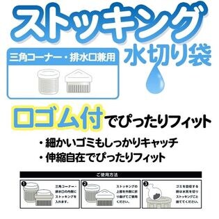【100枚×2袋(200枚)】ストッキング水切り袋 <三角コーナー・排水口用>圧縮パック | 口ゴム付でぴったりフィット、流しの細かいゴミもしっかりキャッチ!