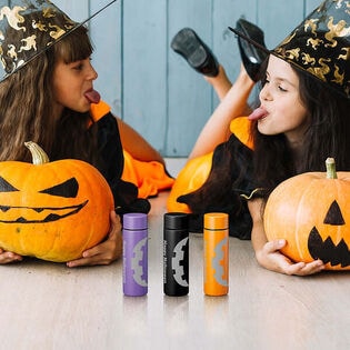 「ジャック・オー・ランタン」の口元のデザインが映える!水筒を口元に持ってくるだけでコスプレ気分!オシャレでキュートなパープルカラーのミニ水筒。