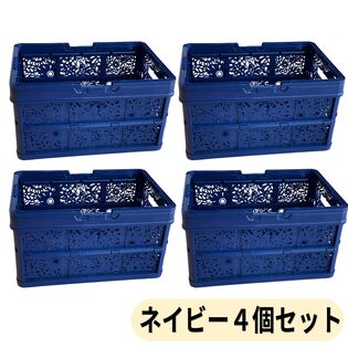 [4個セット/ネイビー] おしゃれ折りたたみコンテナ (取っ手付き) | ワンタッチでパッパッと組立て簡単!使わない時はコンパクト!車内の整理整頓や年末のお片付けに