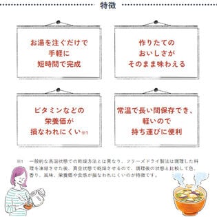 お湯を注ぐだけで、出来上がるお味噌汁で、ほっと一息。