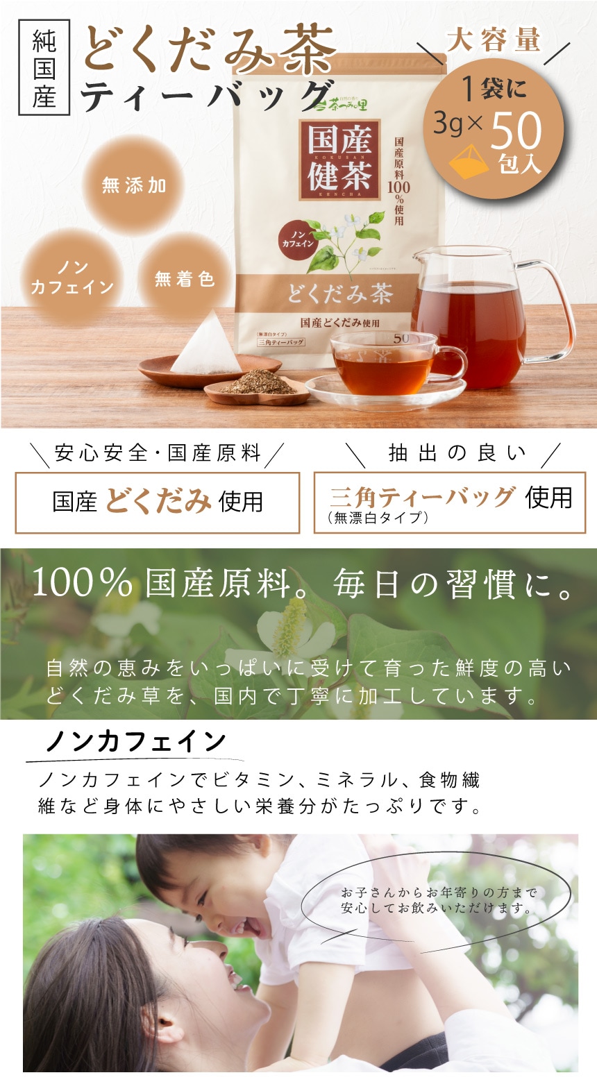 【3g×50包入】茶つみの里 健康茶《国産 》どくだみ茶 ティーバッグ ノンカフェイン | オリジナル焙煎でまろやかなドクダミ茶。100%国産原料・国内製造で安心ポストへお届け