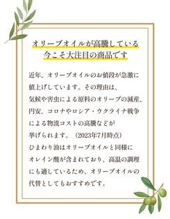 ・その他商品仕様:ひまわり油80%・エキストラバージンオリーブオイル20%のブレンドオイルです。
