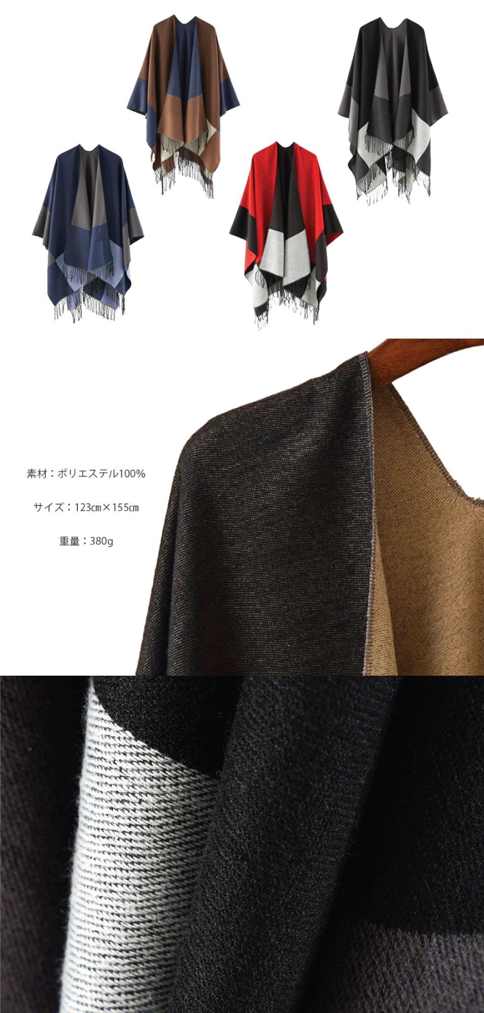 - 【グレー×ブラック】ひざ掛けにも使える大判羽織りショール