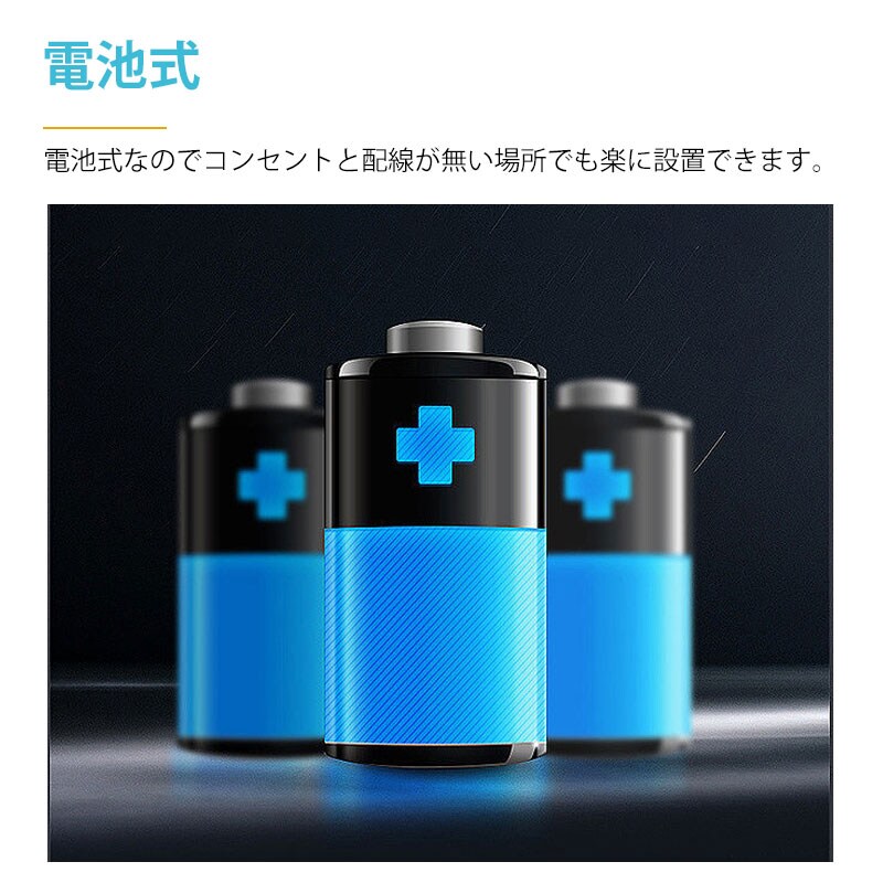 電池式なのでコンセントと配線が無い場所でも楽に設置できます。