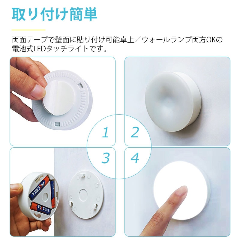 【昼白色】LEDタッチライト(電池式)明るさ調整可 | 枕元やクローゼット、停電や非常時に緊急時用ライトとして◎