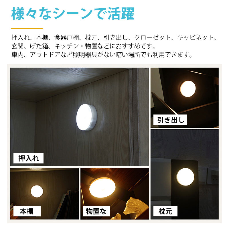電池式 タッチLEDライト ナイトランプ フットライト 足元灯 オムツ替え用 授乳ライト 食器棚 車内 引き出し クロゼット トイレ 寝室 キッチン 室内 防災非常用灯 夜間照明 常夜灯 緊急停電対応 防災対策 緊急照明