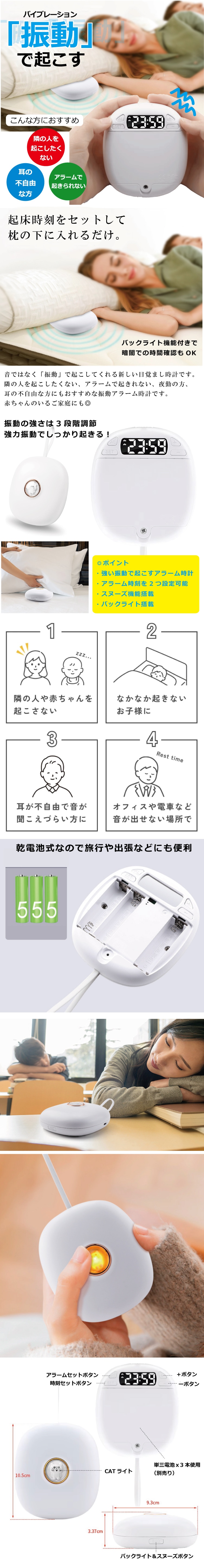 振動で起こす!目覚まし時計 | 『振動』で起こす!隣の人を起こしたくない、音のアラームだけでは起きられない・・そんな方に!