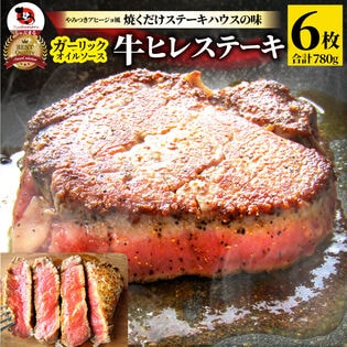 - 【計780g】ガーリック 牛ヒレステーキ(130g×6枚セット)