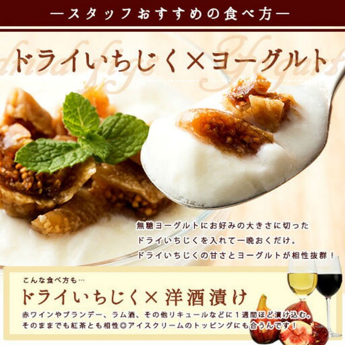 ※ドライイチジクはドライフルーツのなかでも水分が多く、時間の経過とともに追熟し、変化する食べ物です。
