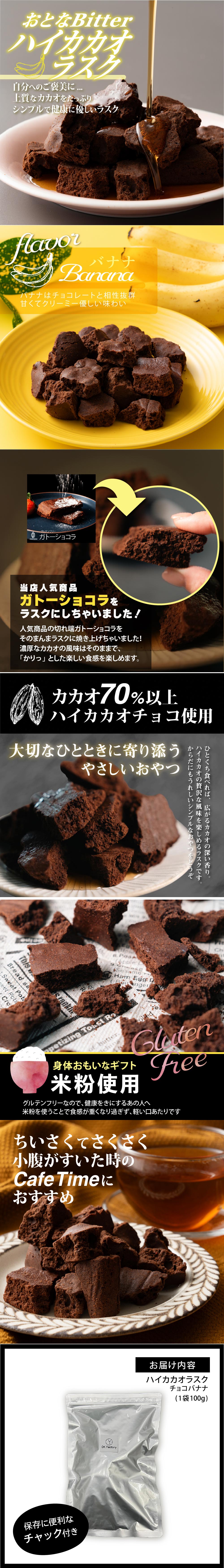 【200g】ハイカカオラスクバナナ(100g×2袋) | 濃厚♪チョコたっぷり&米粉使用で手軽に栄養補給☆グルテンフリーギルティフリー