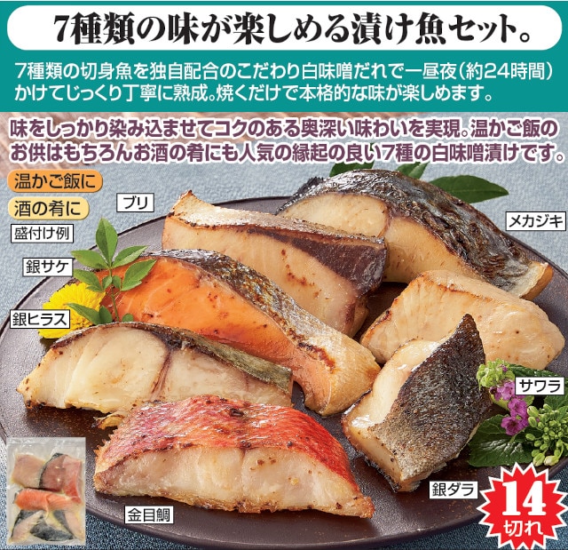 【計14切れ】漬け魚の七福神 | 7種類の味が楽しめる漬け魚セット。