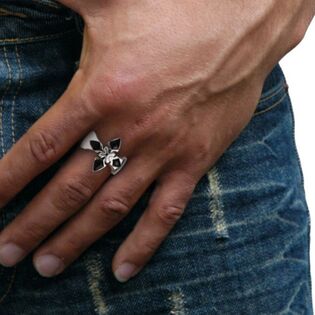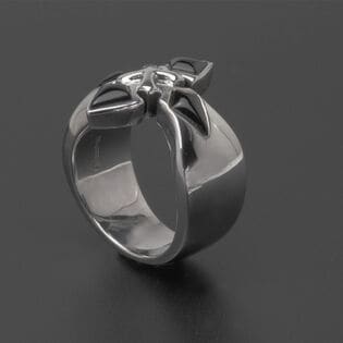 銀のもつ温もりある白をベースに、天然オニキスの際立つ黒をメインに演出されたデザイン。