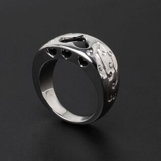 銀のもつ温もりある白をベースに、天然オニキスの際立つ黒をメインに演出されたデザイン。