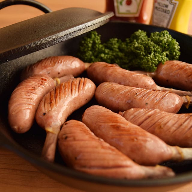 豚骨の旨みをギュッと閉じ込めた骨付きの粗挽きソーセージです。