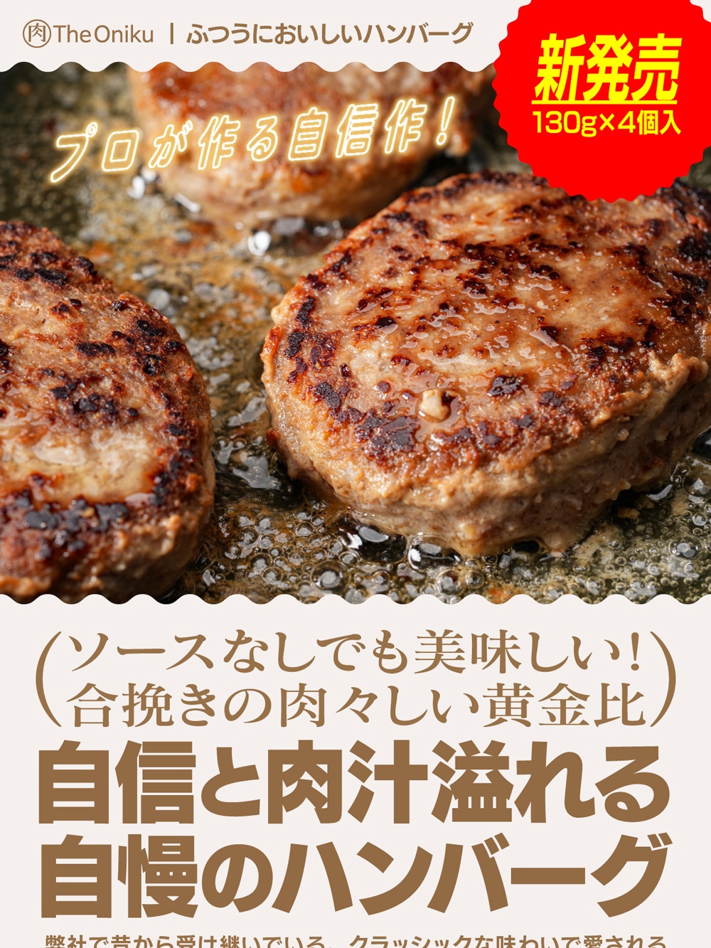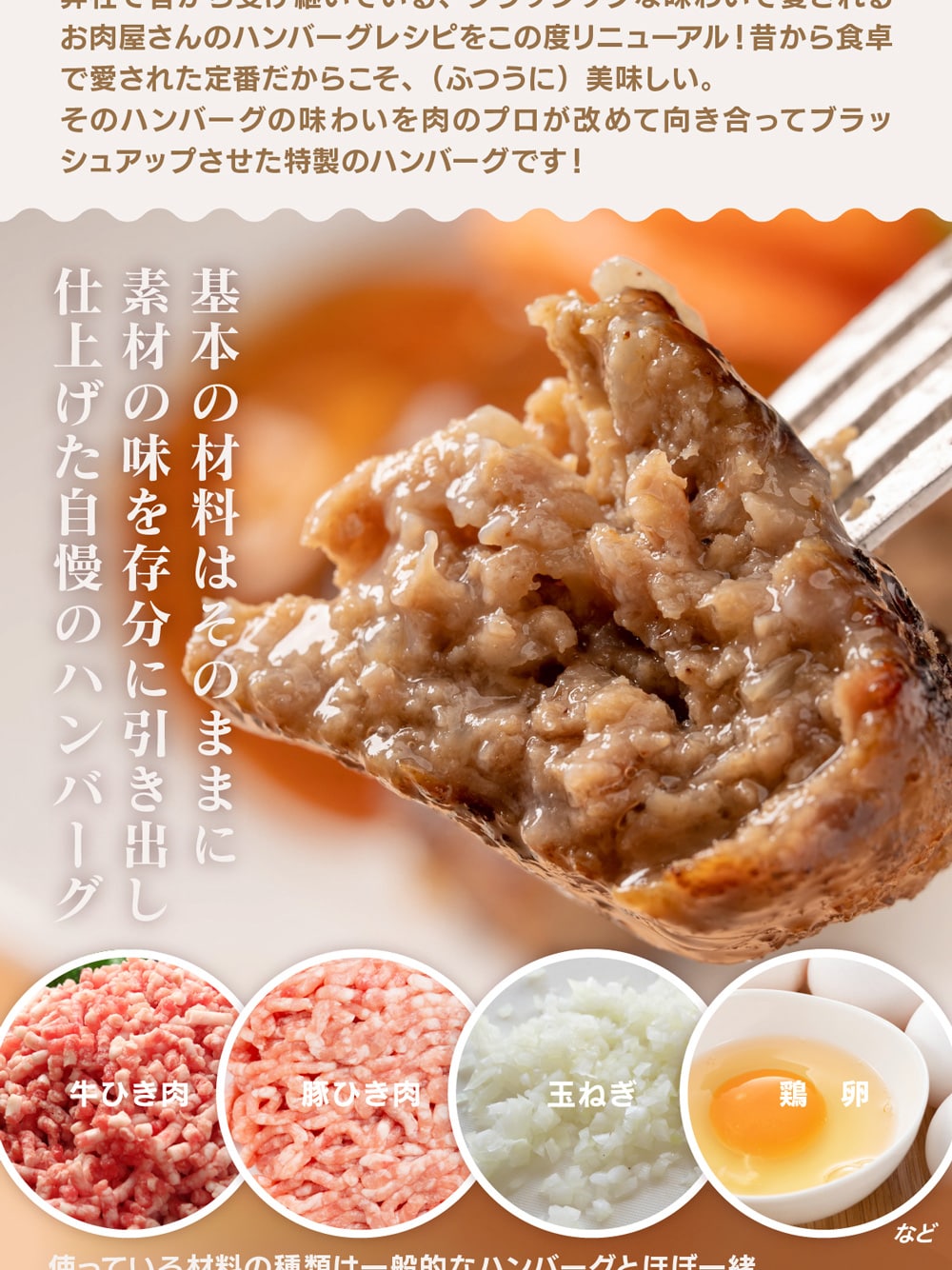 【520g(130g×4)】ふつうにおいしいハンバーグ | お肉屋さんのプロが作る自信作!合挽きの肉々しい黄金比!自信と肉汁溢れる自慢のハンバーグ!
