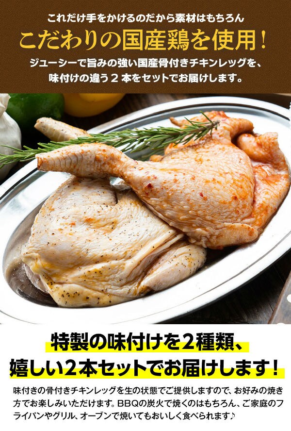 - 【2本】国産鶏骨付きモモ肉 (ガーリック&辛旨味)