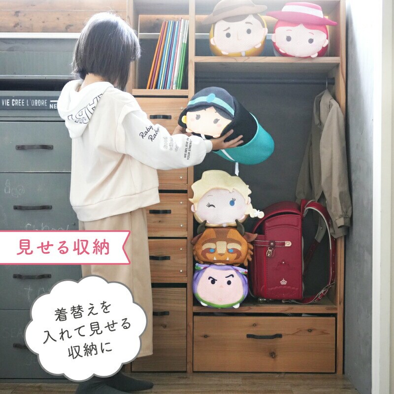 ツムツムのポーチにもなる、かわいい 洗濯ネット。旅行のポーチにも!通気性が抜群のダブルメッシュ素材で、可愛く下着やデリケートな衣類を洗うのにも重宝します。洗濯ネットでありながら、旅行の際は衣類の仕分けや収納用の トラベルポーチとしても使えちゃう万能ネット。ポーチに衣類をくるくる入れて、帰宅後はそのまま洗濯機にポイと入れる事ができ、家事の時短にも役立ちます。透けないダブルメッシュ加工なので、下着等を持っていくスポーツジムなどの着替えいれとしても。使い方は自由自在で、子供のおもちゃ入れ、インテリア、プールバッグ、ぬいぐるみを整理する入れ物としても便利。暑い時期には、フェイスタオル バスタオル をまとめて入れて置けば冷たい枕にも!