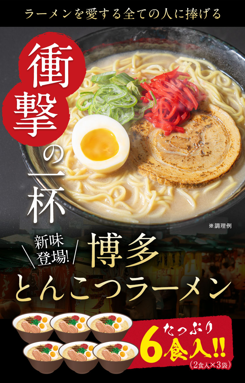 - 【6食(2食入り×3袋)】博多豚骨ラーメン こだわりの生麺と本格液体とんこつスープ!